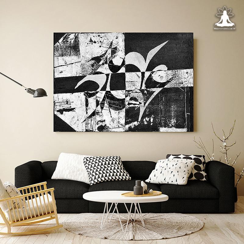 پارچه تمامی تابلوها پارچه بوم نفیس و چارچوب تابلوها از چوب روس با ضخامت ۵ سانتیمتر تهیه می شوند.